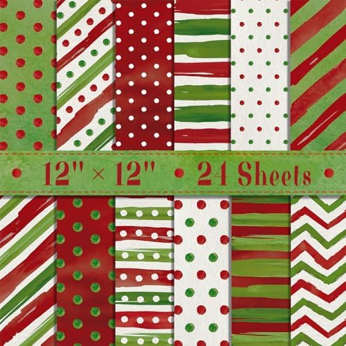 View full details24 Sheets Christmas Pattern Paper 12'' × 12'' Double-Sided Christmas Scrapbook Craft Paper Red Green Decorative Decoupage Cardstock for Xmas Holiday DIY Card Making Scrapbook Decoration