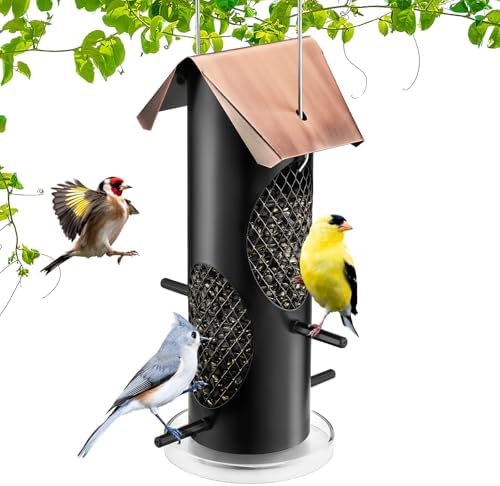 OUTDOOR METAL BIRD FEEDER: Kingsyard metal bird feeders for outdoors is made of high quality metal. The metal exterior is baked paint process. T...