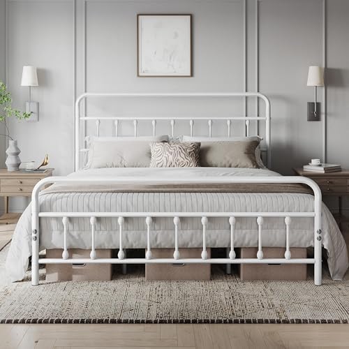 View full detailsYaheetech Classic Metal Platform Bed Frame Mattress Foundation with Victorian Style Iron-Art Headboard/Footboard/Under Bed Storage/No Box Spring Needed/King Size White