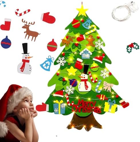 View full detailsFelt Christmas Tree for Toddlers, DIY Felt Christmas Tree with Lights, Xmas Decorations Wall Hanging for Xmas Party Favors