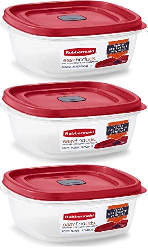 View full detailsRubbermaid Easy Find Lid Square 5-Cup Food Storage Container (Pack of 3), Red (Vented)