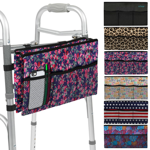 Brand: ViveColor: Pink FloralFeatures: FITS ALL WALKER STYLES: Adjustable loop fasteners allow the Vive walker bag to easily attach to the front o...