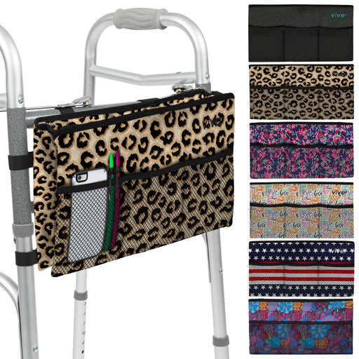 Brand: ViveColor: LeopardFeatures: FITS ALL WALKER STYLES: Adjustable loop fasteners allow the Vive walker bag to easily attach to the front of an...