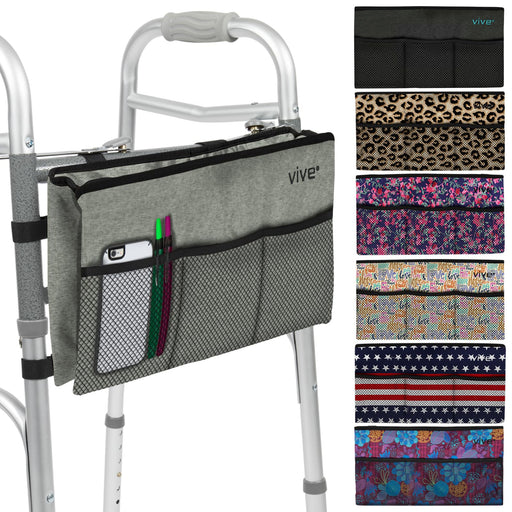 Brand: ViveColor: GrayFeatures: FITS ALL WALKER STYLES: Adjustable loop fasteners allow the Vive walker bag to easily attach to the front of any w...
