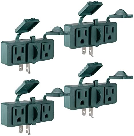 Philips 3-Outlet Extender with Covers, 4 Pack, Weatherproof Grounded Adapter, 3-Prong Wall Tap, Power Splitter, Cruise Essentials, Use for Home Office School Dorm Garage, Green, SPS3272G/37