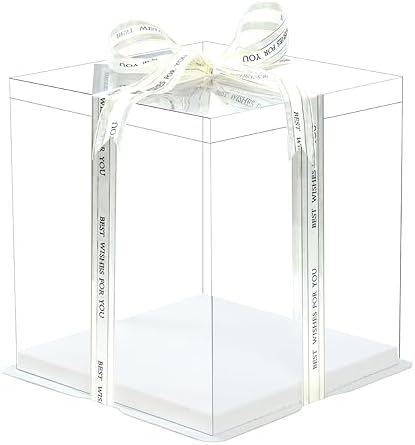 View full details5 Pcs, 8'x8'x9' inch Food Grade Clear Plastic Display Boxes, 20.4 x 20.4 x 24 cm with Ribbon, for Cakes, Bakeries, Desserts, Birthday, Christmas and Thanksgiving