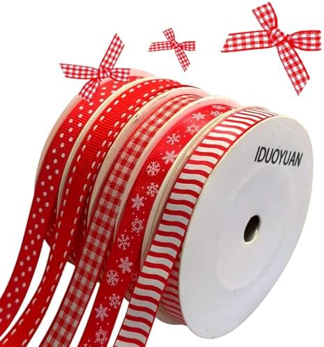 1. 50 Yards Bulk Christmas Ribbon – 5 Rolls (3/8 Inch Wide) → Perfect for gift wrapping, wreath making, and Christmas tree trimming. Each roll i...