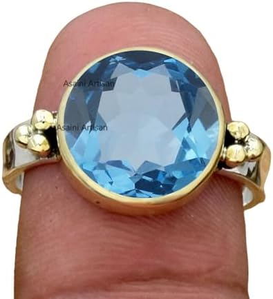Radiant Sophistication: 10MM Round Gemstone Pure Solid 925 Sterling Silver Ring with Two-Color Elegance, Mother's Day Gift for Women