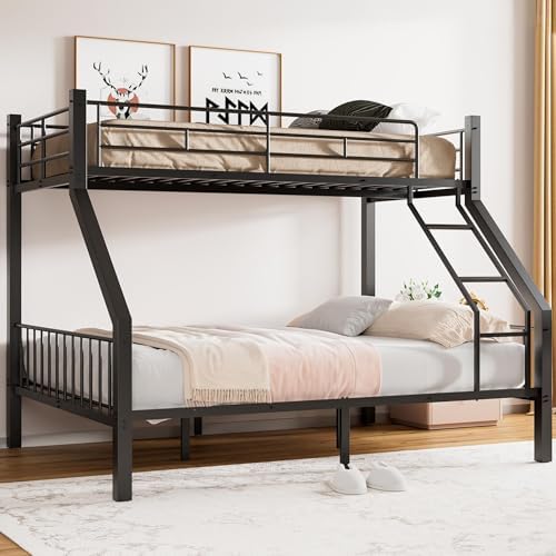 View full detailsTwin XL Over Queen Bunk Bed, Heavy Duty Bunk Bed with EVA Padded Ladder and Full-Length Guardrails, Metal Queen Bed Frame with Slats Support for Adults, Teens, Kids, Black