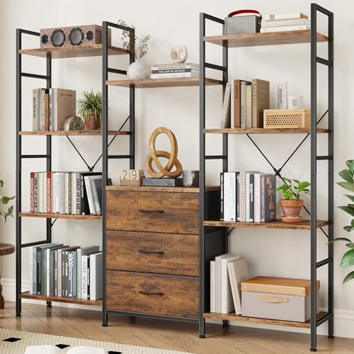 View full detailsTriple Bookshelf with 3 Fabric Drawers, 5-Tier Book Shelf and 10 Display Shelves, Industrial Large Bookcase for Home & Office, Rustic Brown, 47'' Wide