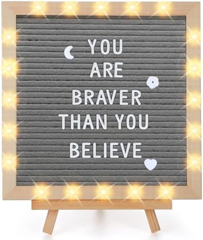 View full detailsChangeable Felt Letter Board with LED Lights - 10×10" Message Custom Signs & Wood Stand & 450 Letters, Poster Board for Christmas/Pregnancy/Baby Announcement/Classroom Wall Decor Gifts, Grey