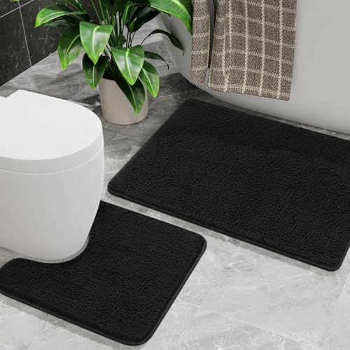View full detailsAROGAN Bathroom Rug Sets 2 Piece, 20"x20" U-Shaped Toilet Mat and 21"×34" Floor Bath Mats, Machine Washable Bath Rug Set, Absorbent and Dry Quickly, Soft Non Slip Bathroom Rug Set, Black