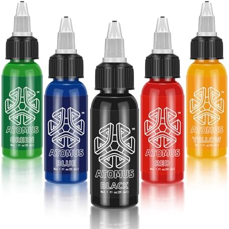 View full detailsATOMUS Tattoo Ink 5 Colors 1oz 30ml Tattoo Supply Black Pigment Natural Plant Tattoo Ink Pigment Permanent Makeup Tattoos Pigment