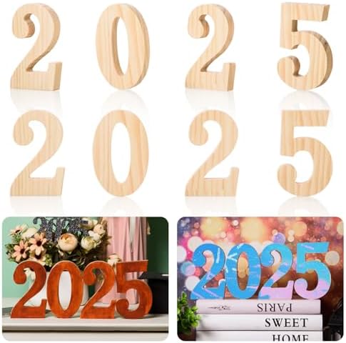 2025 Wooden Cutouts: the package includes 12 pieces of unfinished numbers wooden cutouts, the numbers "2" wood cutout is about 10 x 6.35 cm/3.94...