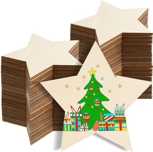 View full details60 Pcs Wood Star Cutouts 5 Inch Unfinished Wooden Star Pieces Blank Wood Stars Slices Natural Wood Stars Cutouts Ornaments for DIY Craft, Painting, Wedding, Patriotic, Christmas Party Decor