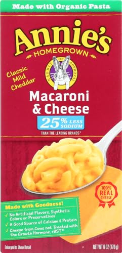 View full detailsAnnie's Shells and Real Aged Cheddar Mac and Cheese with Organic Pasta, Made with Real Cheese, Dinner Side or Snacks, 6 oz (Pack of 12)