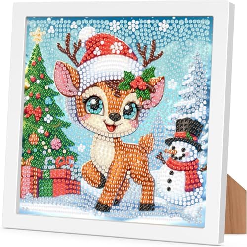 View full detailsDeer Diamond Art Painting Kits for Kids with Frame,Christmas Diamond Art for Kids Ages 4-8-12 with Frame, Easy Small Cute Animal Gem Painting Kit for Gift Home Wall Decoration (7x7 inch)