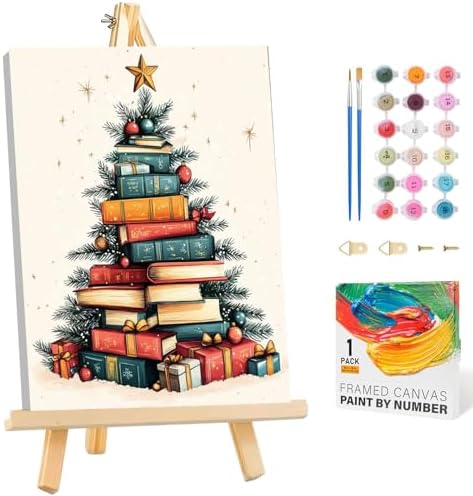 View full detailsFramed Paint by Numbers Kit for Adults Beginners & Kids Ages 8-12,Christmas Tree Adult Paint by Number Kits on Canvas with Easel, Acrylic Oil Painting Kits for Adults for Gift Home Decor(8x12 inch)