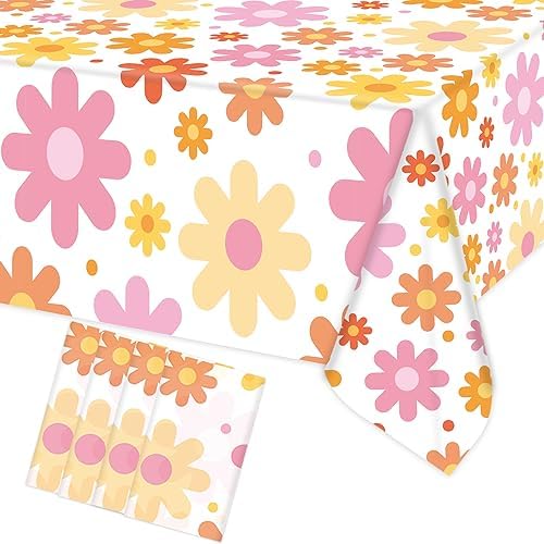 View full detailsAugisteen 4 PCS Daisy Tablecloth Plastic Daisy Flower Disposable Table Cover Groovy Party Tablecloth for Boho Hippie Retro Themed Birthday Baby Shower Party Supplies, 54" x 108"