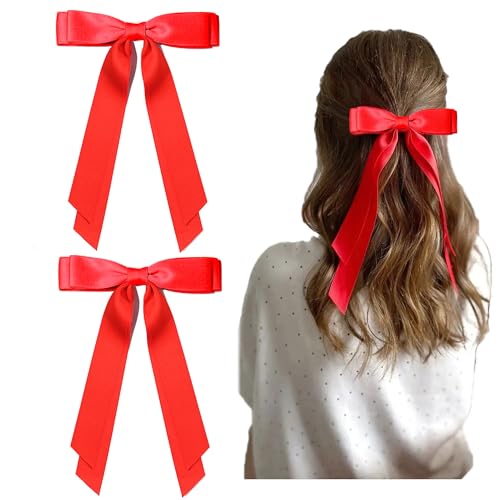 View full detailsAyesha Red Hair Bows Clips Red Satin Ribbon Bows with Long Tail Christmas Hair Bows Barrettes Hair Accessories for Women Girls 2pcs red bows