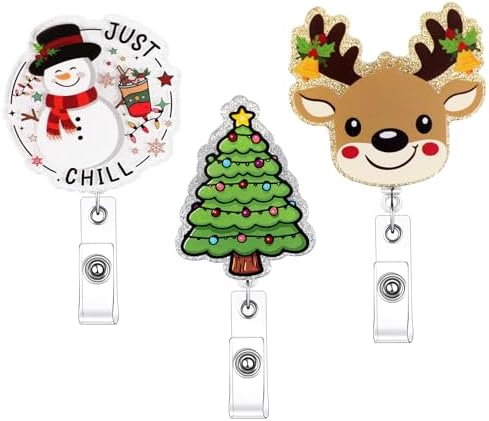 Christmas Badge Reel:You will get 3 PCS cute patterns badge holder retractable clip that can be easily worn on the belt, backpack, and pockets. ...