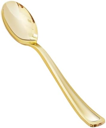 View full detailsBESTVIP 300 Pack 6.9 Inch Gold Plastic Spoons, Heavy Duty Plastic Silverware, Heavyweight Gold Disposable Spoons, Disposable Serving Utensils for Catering, Parties, Dinners, Weddings, Christmas