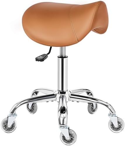 View full detailsBEWISHOME Rolling Saddle Stool,Height Adjustable Saddle Stool with Wheels,Ergonomic- Comfortable 360 Swivel PU Leather Saddle Chair Seat for Salon, Massage, Clinic, Lab, Office (Camel) BMD01Z
