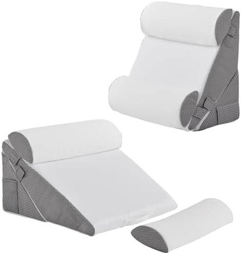 View full detailsAdjustable 4pcs Bed Wedge Pillow Set, Memory Foam Wedge Pillows Post Surgery for Back, Neck, Leg Pain Relief, Pillow Wedge for Sleeping, Sitting up in Bed, Acid Reflux and GERD, White/Grey