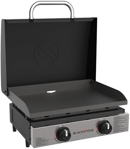 View full detailsBlackstone 22” On The Go Scissor-Leg Griddle with Two Burners -Stainless Steel Gas Griddle with Hood, Wheels, Side Shelf –Heavy Duty Outdoor Stainless Steel Griddle for Backyard, Patio Camping –1935