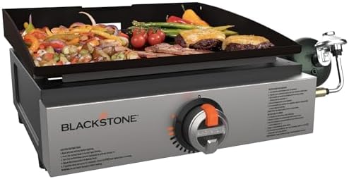 View full detailsBlackstone 1814 Stainless Steel Propane Gas Portable, Flat Top Griddle Frill Station for Kitchen, Camping, Outdoor, Tailgating, Tabletop, Countertop – Heavy Duty & 12, 000 BTUs, 17 Inch, Black