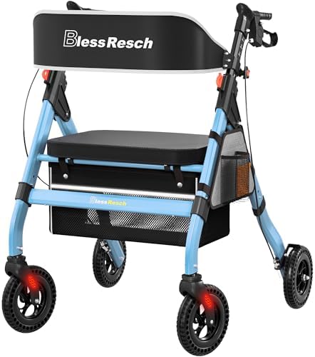 View full detailsBlessReach Foldable Rollator Walkers with Seat for Seniors, 450 lb Capacity, 8'' Wheels, 18" Big Seat, 6-Position Adjustable Height, Heavy-Duty Aluminum Rolling Walker (Blue)