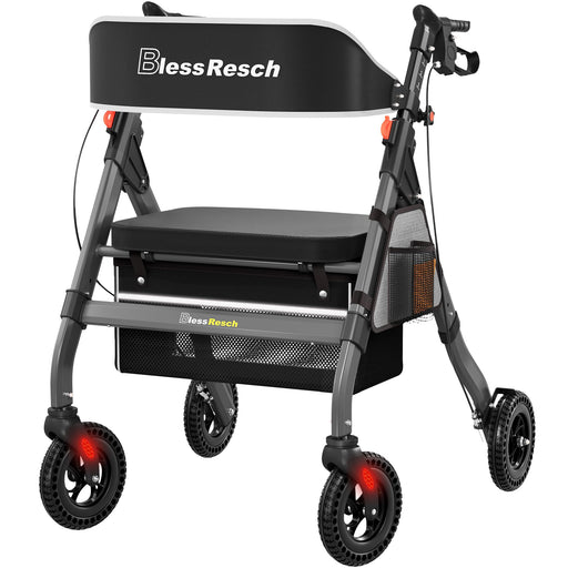 View full detailsBlessReach Foldable Rollator Walkers with Seat for Seniors, 450 lb Capacity, 8'' Wheels, 18" Big Seat, 6-Position Height, Heavy-Duty Aluminum Rolling Walker (Gray)