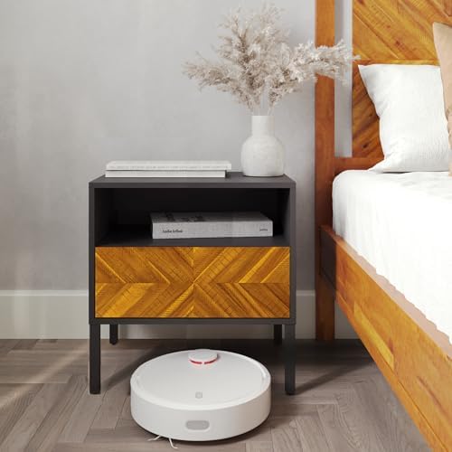 View full detailsBme Vivian Solid Wood Nightstand, End Table, Bedside Table with Herringbone Pattern for Rustic Bedroom, Easy Assembly, Rustic Golden Brown and Black