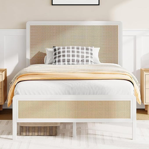 View full detailsRattan Bed Frame Queen, Metal Platform Bed Frame Queen Size with Headboard, Boho Queen Bed Frame with Strong Metal Slats Support, No Box Spring Needed, Noise-Free, Easily Assemble, White