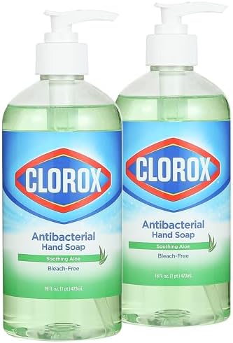 View full detailsClorox Antibacterial Liquid Hand Soap with Pump, Soothing Aloe Scent - Scented Hand Wash, Liquid Soap for Bathroom or Kitchen Washes Away Dirt from Hands and Keeps Them Soft, 16 Fl Oz - 2 Pack