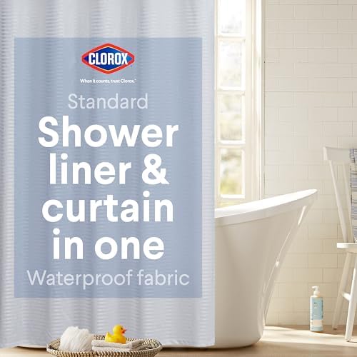 View full detailsCLOROX 2-in-1 Bathroom Shower Curtain Liner, Durable Fabric, Weighted Magnets for Bath Water Control, Washable Premium Quality, Modern - 72" x 72" White