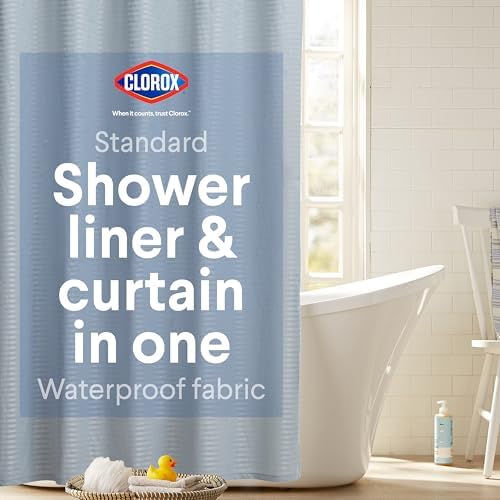 View full detailsCLOROX 2-in-1 Bathroom Shower Curtain Liner, Durable Fabric, Weighted Magnets for Bath Water Control, Washable Premium Quality, Modern - 72" x 72" Grey Satin Stripe