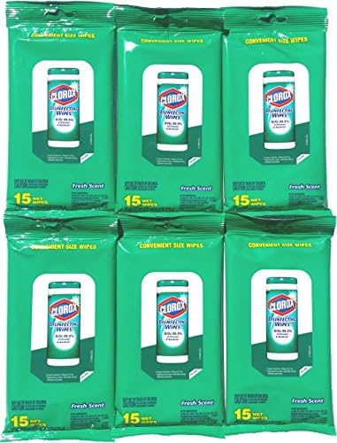 View full detailsClorox Cleaning Wipes - 90 Count - Resealable Package - Fresh Scent, 15 Count (Pack of 6)