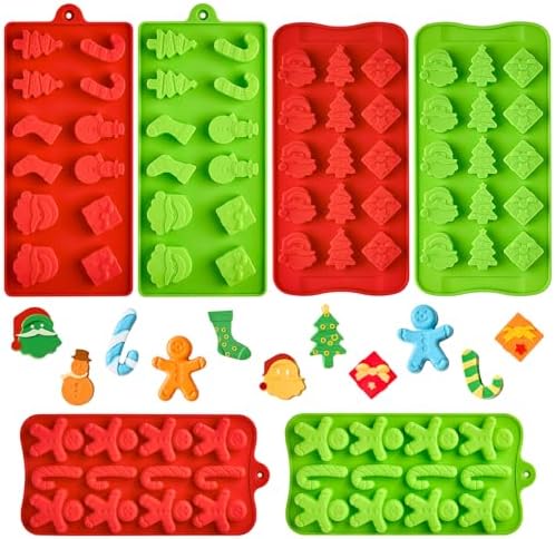 View full detailsChristmas Chocolate Molds, Set of 6 Santa Clause Christmas Tree Snowman Gingerbread Man Silicone Molds for Candies, Gummies, Jellies, Wax Melts, Candles