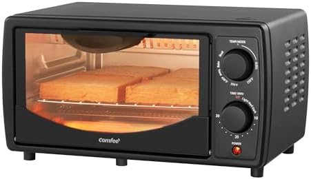 View full detailsCOMFEE' Toaster Oven Countertop, Small Toaster Ovens Combo 4 slice, Mini Oven for 9" Pizza, Compact Oven 2 Racks for Toast, Bake, Broil, 950W, Black, CTO-E101A(BK)