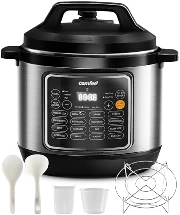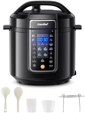 View full detailsCOMFEE’ 9-in-1 Electric Pressure Cooker, 14 Presets Instant Multi Cooker Olla de Presion Non-Stick Pot Yogurt Maker Rice Cooker Slow Cooker Sauté Steamer 6 Quarts Black