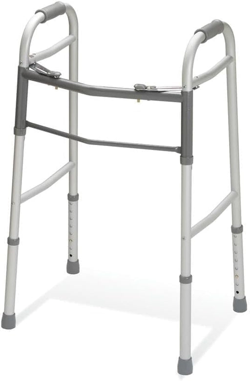 View full detailsCaring Two-Button Folding Walkers Without Wheels, 300 lbs Weight Capacity - Robust & Adjustable Mobility Aid for Elderly and Disabled Individuals - 1 Count
