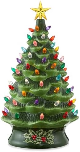 View full detailsCasafield Hand Painted Ceramic Christmas Tree, Green 15-Inch Pre-Lit Tree with 128 Multi Color Lights and 2 Star Toppers