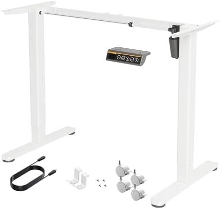 View full detailsClaiks Standing Desk Frame, Electric Stand Up Desk Frame Workstation Up to 63",T-Shaped Adjustable Standing Computer Desk for Home and Office, (White Frame only)