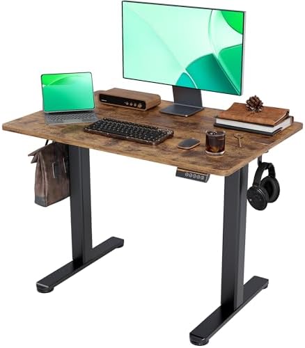 View full detailsClaiks Electric Standing Desk, Adjustable Height Stand up Desk, 40x24 Inches Sit Stand Home Office Desk with Splice Board, Black Frame/Rustic Brown Top