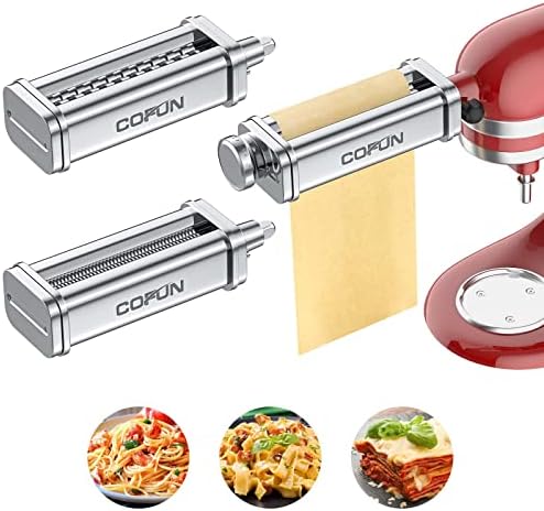 View full detailsPasta Attachment for Kitchenaid Mixer Cofun 3 in 1 for Kitchen Aid Pasta Maker Assecories Included Pasta Sheet Roller, Spaghetti Cutter, Fettuccine Cutter