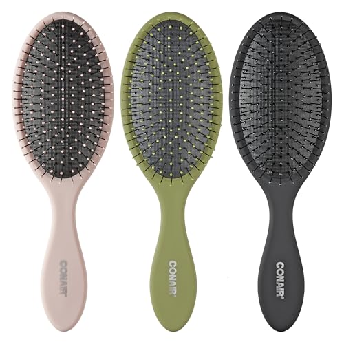 Conair Detangling Hair Brush 3PK - For wet and dry hair - curly hair brush - hair brushes for women - detangler brush - hair brushes for women - Evergreen, Blush Pink, Black Assorted