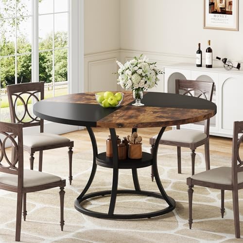 View full detailsRound Dining Table for 4-6, 47 inch Wood Dining Room Table with Storage Shelf, Farmhouse Kitchen Table with Metal Base, Large Round Table for Home, Rustic Brown and Black, No Chairs