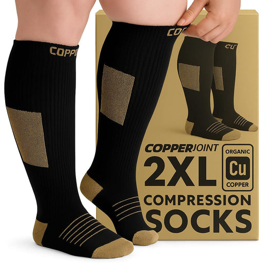 View full detailsCopperJoint Copper Compression Socks Women Knee High, Easy On Wide Calf-Compression Socks Men for Circulation, for Women & Nurses, Support Sock, Running, Basketball, Travel, Sports - 2X-Large