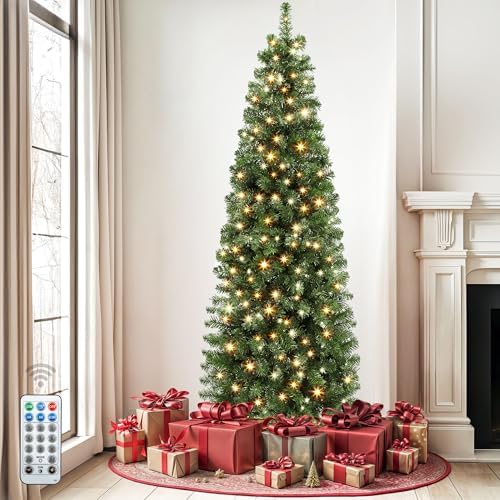 View full detailsDWVO 7.5 FT Pre-Lit Slim Pencil Fraser Fir Artificial Christmas Tree with 350 Lights and 1000 Branch Tips, Green